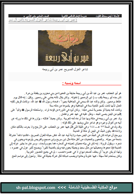 شرح وتحليل نص أمن آل نعم لعمر بن ابي ربيعة للصف الحادي عشر الفصل الثاني المكتبة الفلسطينية الشاملة
