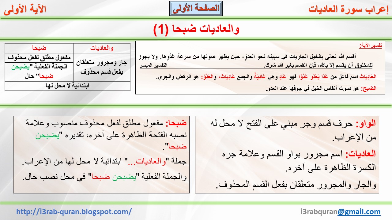 إعراب القرآن الكريم إعراب والعاديات ضبحا 1