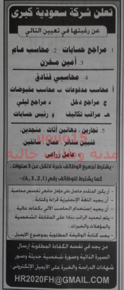 وظائف خالية فرص عمل فى السعودية 2014 للمصريين المقيمين بمصر منشور فى الأهرام الجمعة 3 1 2014